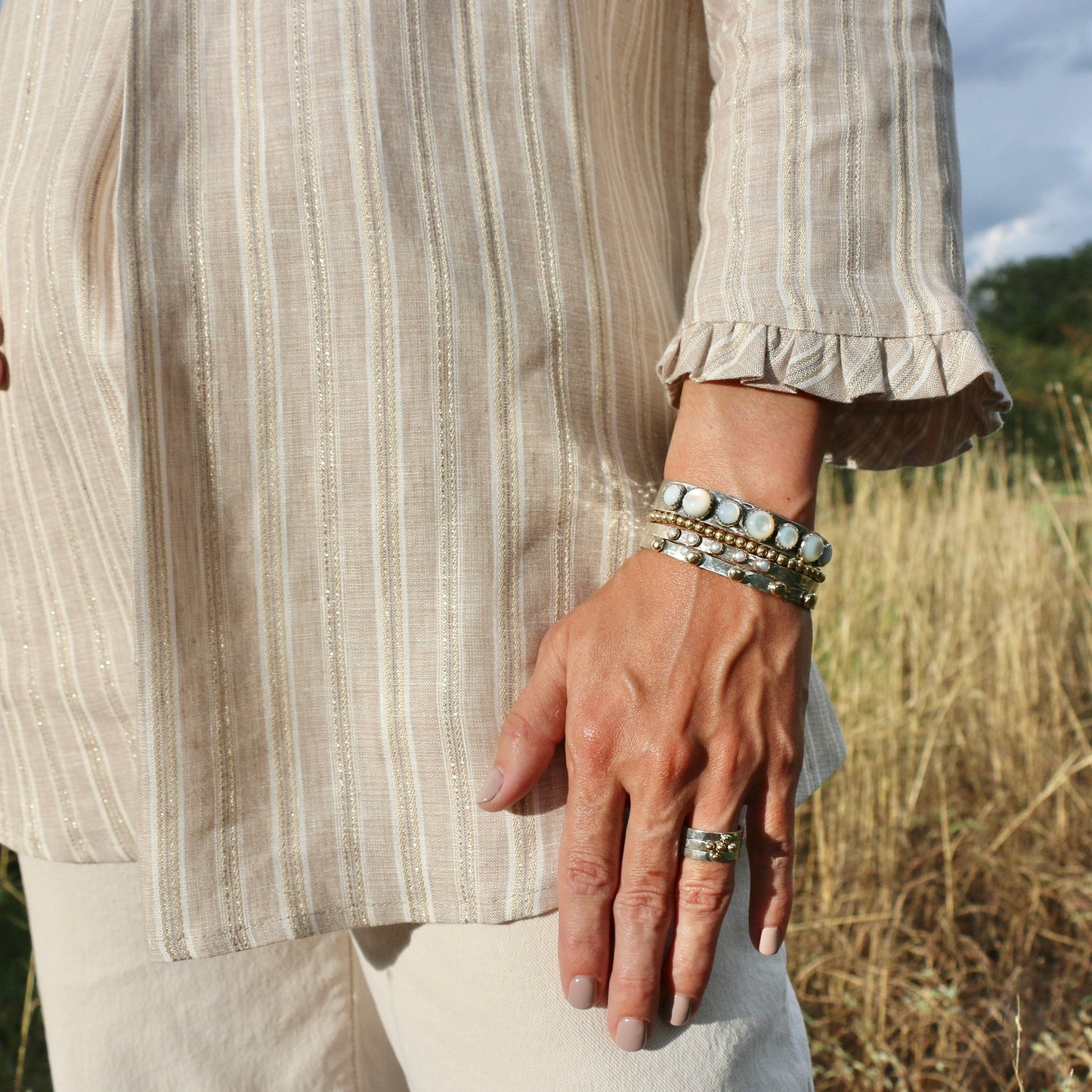 Ruffle Collar Shirt - Lurex Gold Stripe