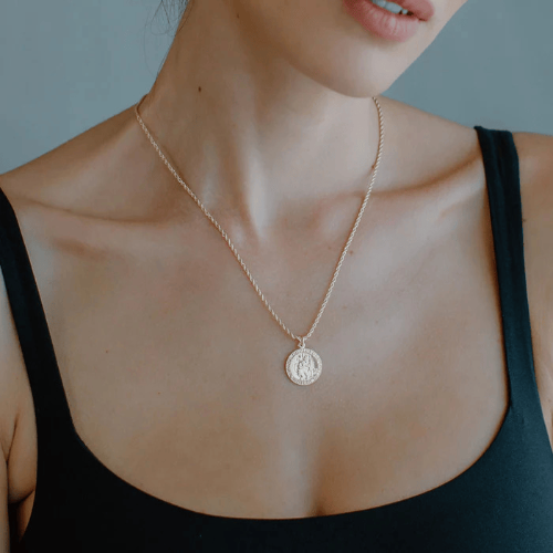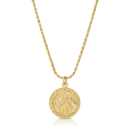 A delightful Saint Christopher charm swings from a sweet and slender 18-inch rope chain, perfect for adding a little sparkle to your day.