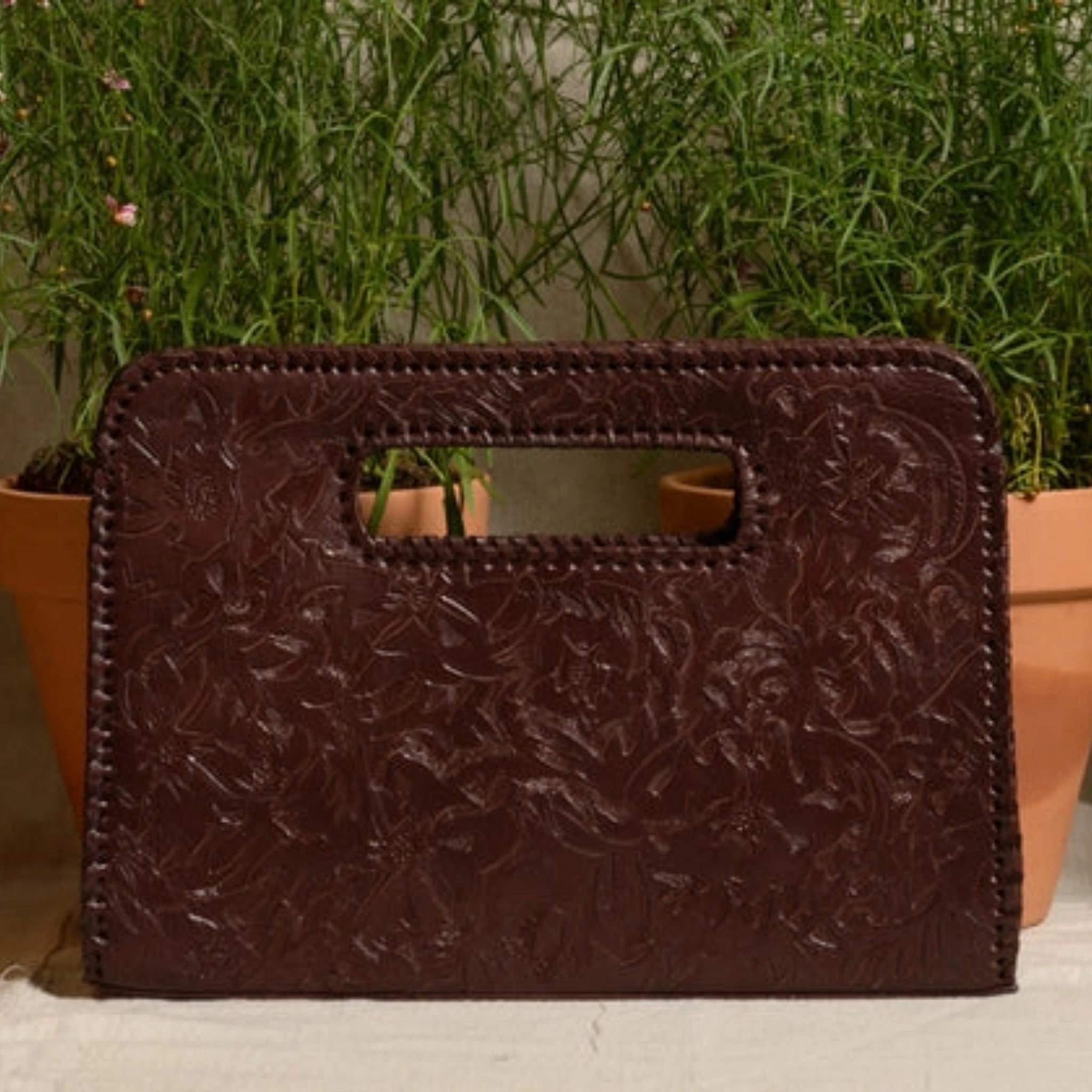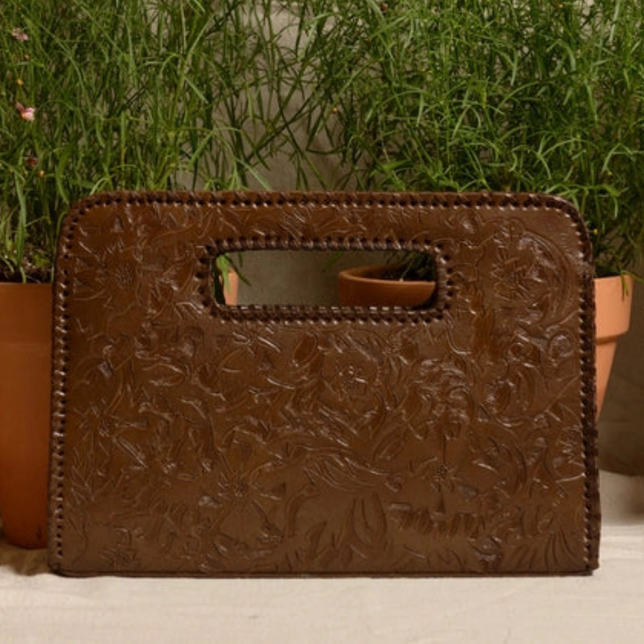 Catalina Hand-Tooled Leather Clutch