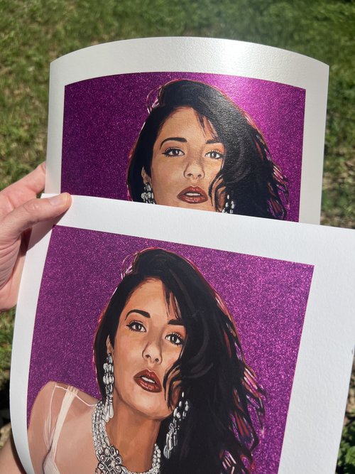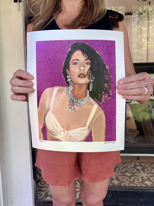 The Selena print is available in three sizes: 10” x 12” (image measures 8” x 10”), 14” x 18” (image measures 12” x 16”), and 18” x 22” (image measures 16” x 20”).