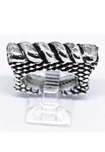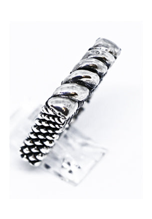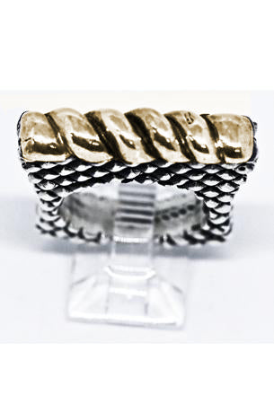 Elevate your look with our Twist Bar Ring. The twisted bar design adds a subtle yet striking element, while the scaled shank and stacker ring style create a unique, layered effect. Choose from all sterling silver or a gold and silver combination for a timeless and elegant aesthetic.