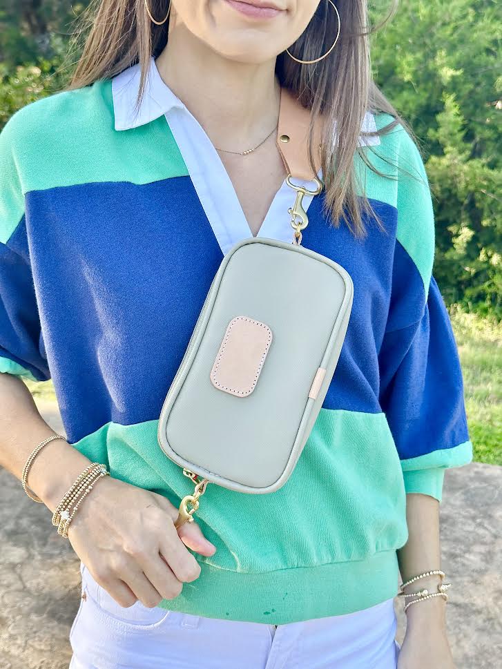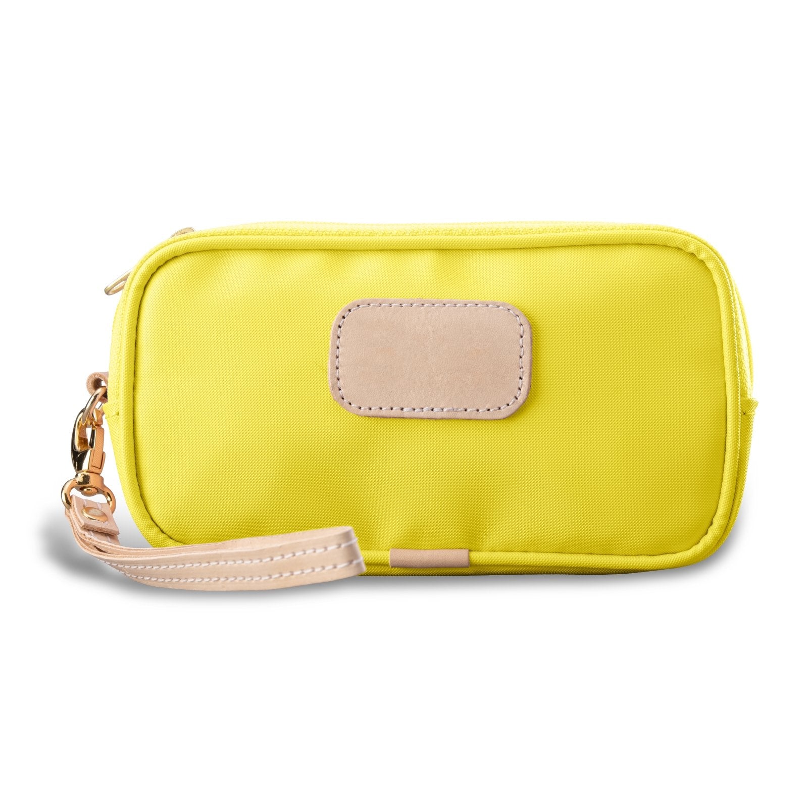 Fun and function in a compact package, the Wristlet is perfect for carrying anything and everything! We’ve redesigned this item and increased its size, so that it now has plenty of room for large cell phones, key fobs, and sunnies. It features a fully lined interior with two open internal pockets for credit cards, one zippered pocket for change, and a zippered closure. The redesign also improved the function of the wrist strap, which now snaps on and off the zipper for easy carrying.