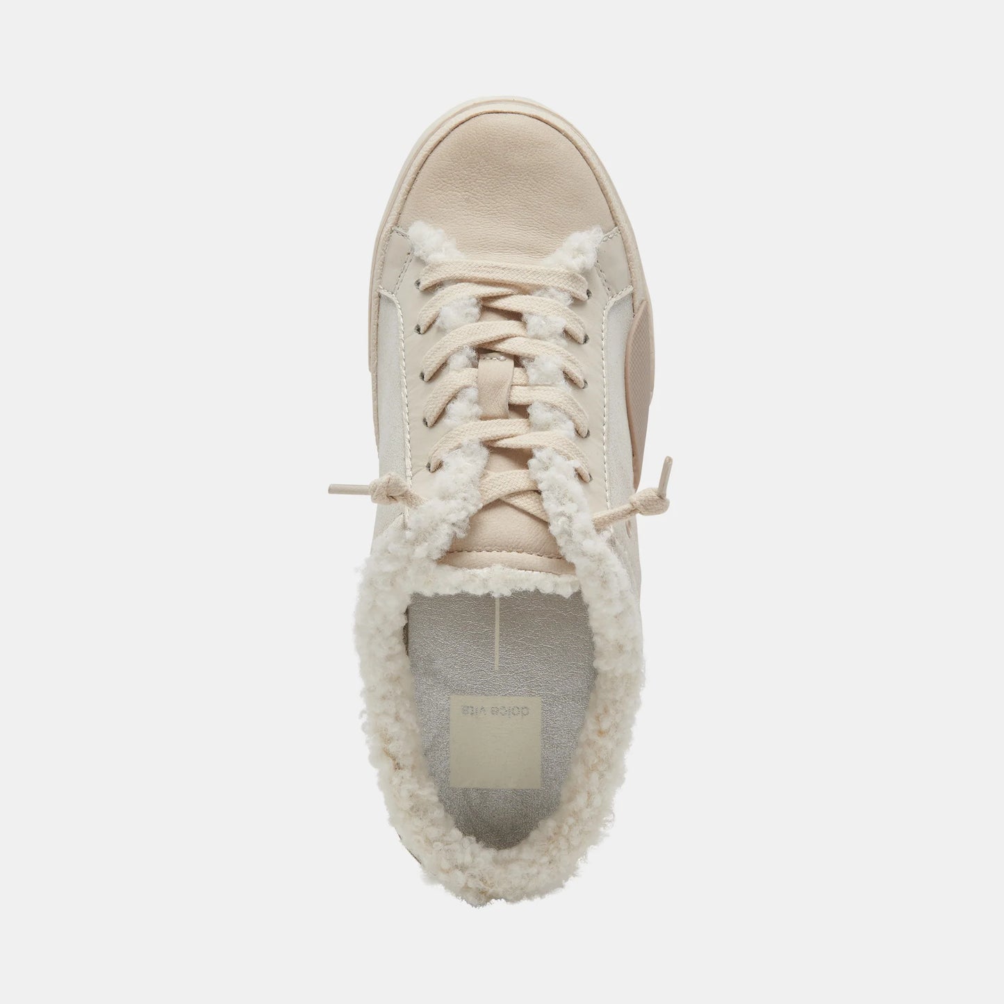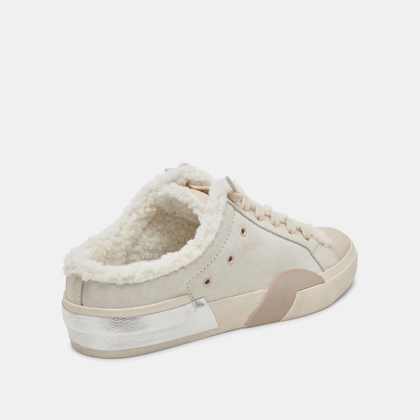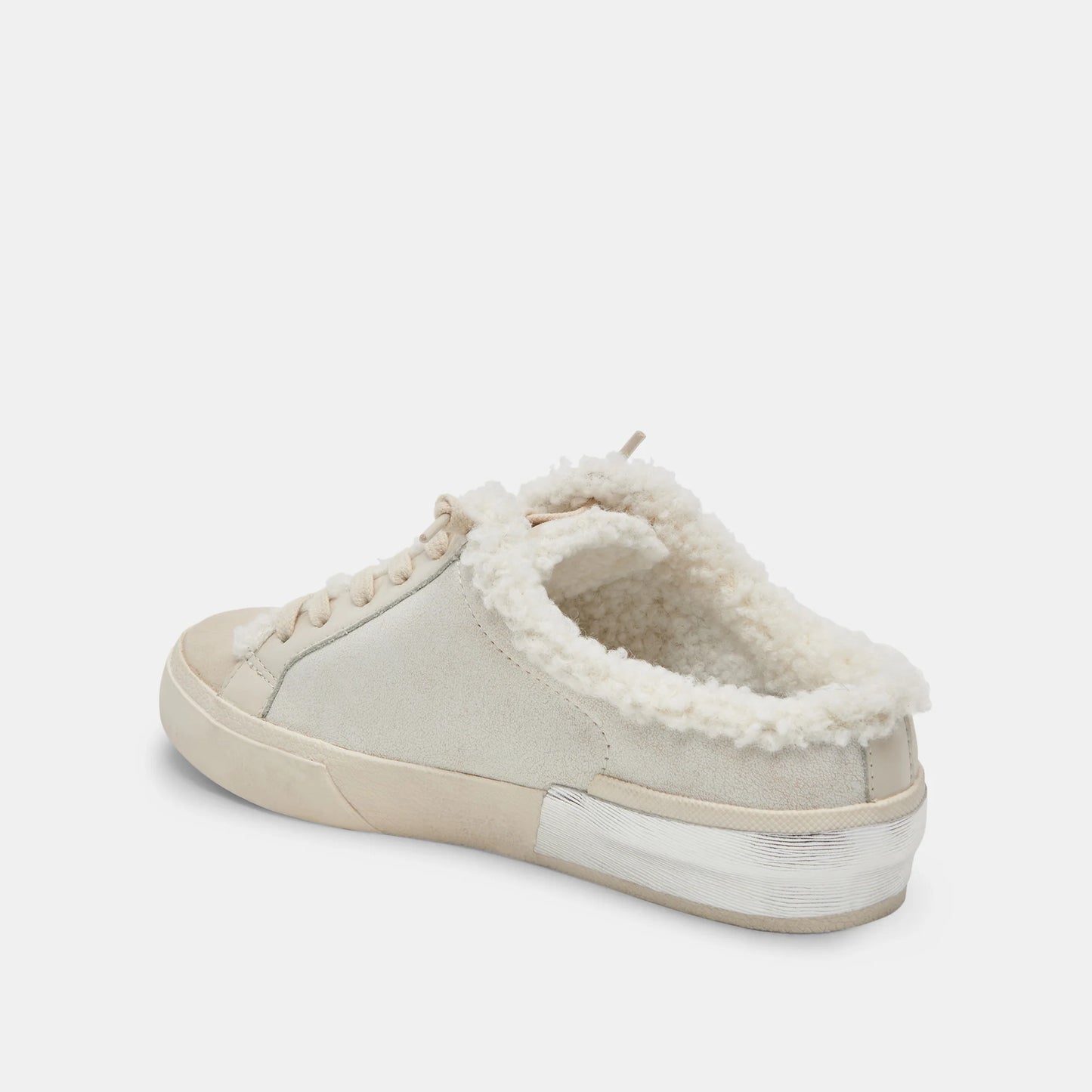 Zantel Slip On Fur Sneakers - Off White Crackled Leather